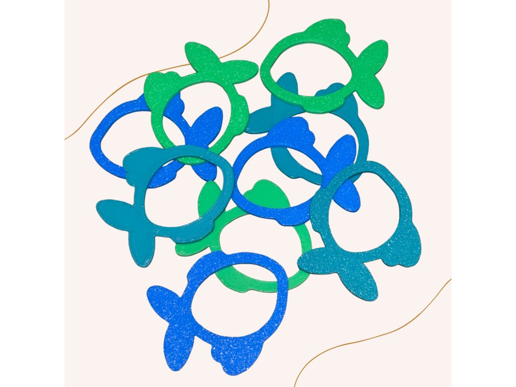 - Cca - 40 x 45 x 2 mm ( 15 ks v balení - 5x zelené, 5x tyrkys, 5x modré)