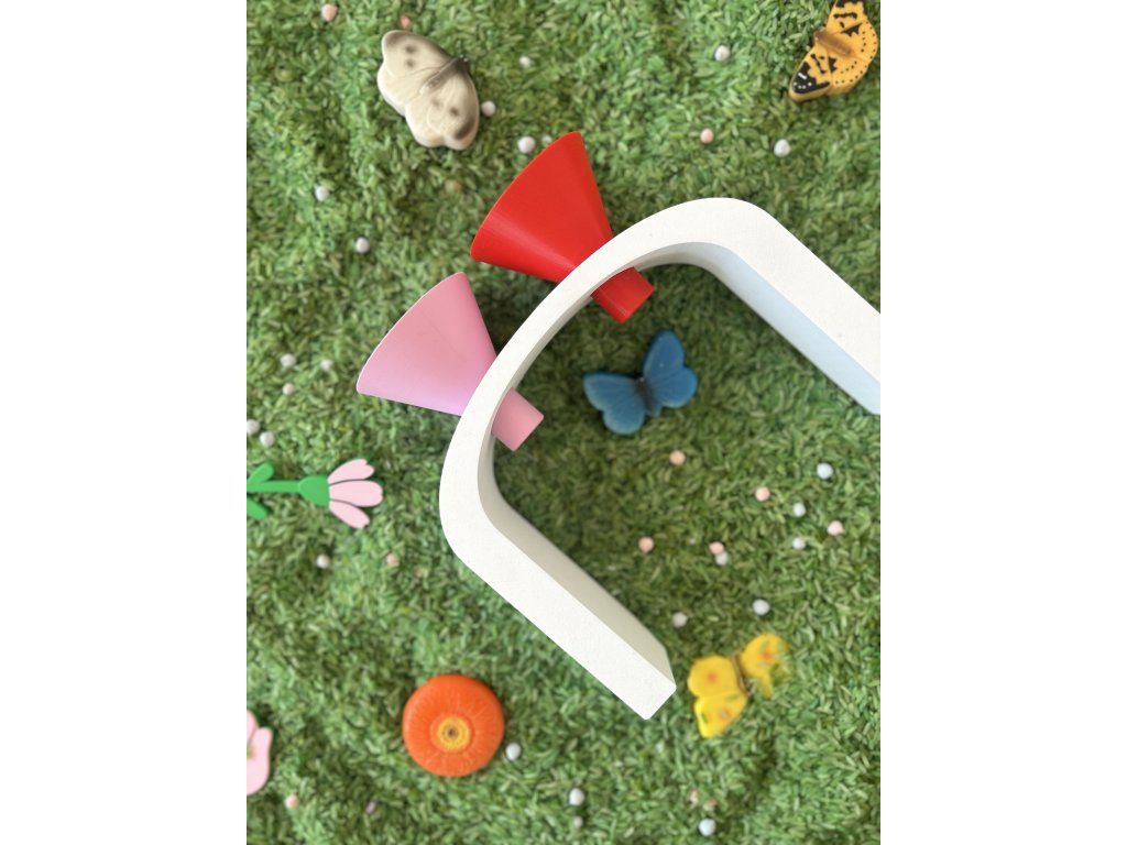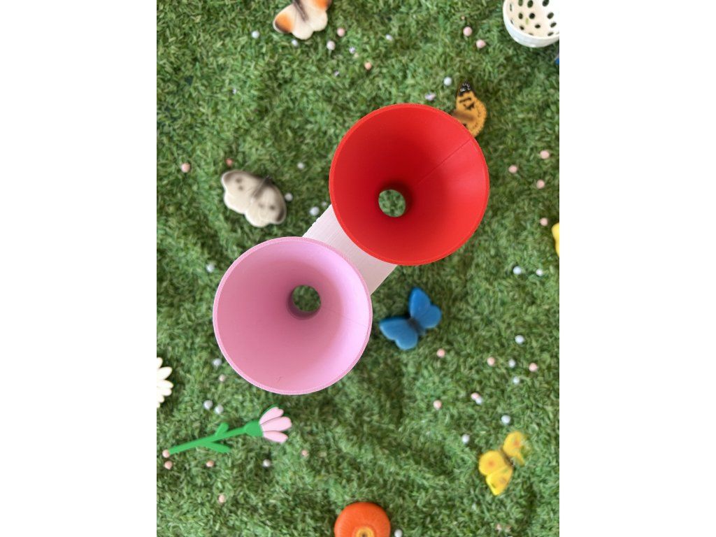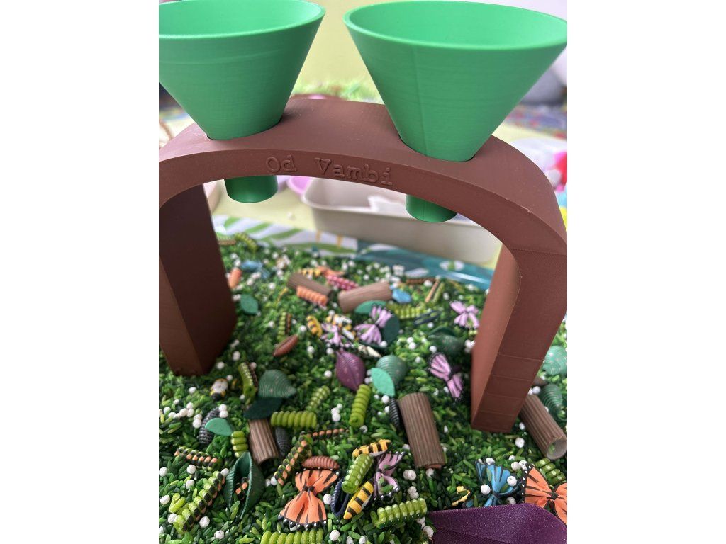 Tento stojan s trychtýři je vedená edukační a smyslová pomůcka určená pro strukturované aktivity zaměřené na rozvoj jemné motoriky, koordinace oko–ruka, vizuálně-prostorového vnímání a smyslového zkoumání.