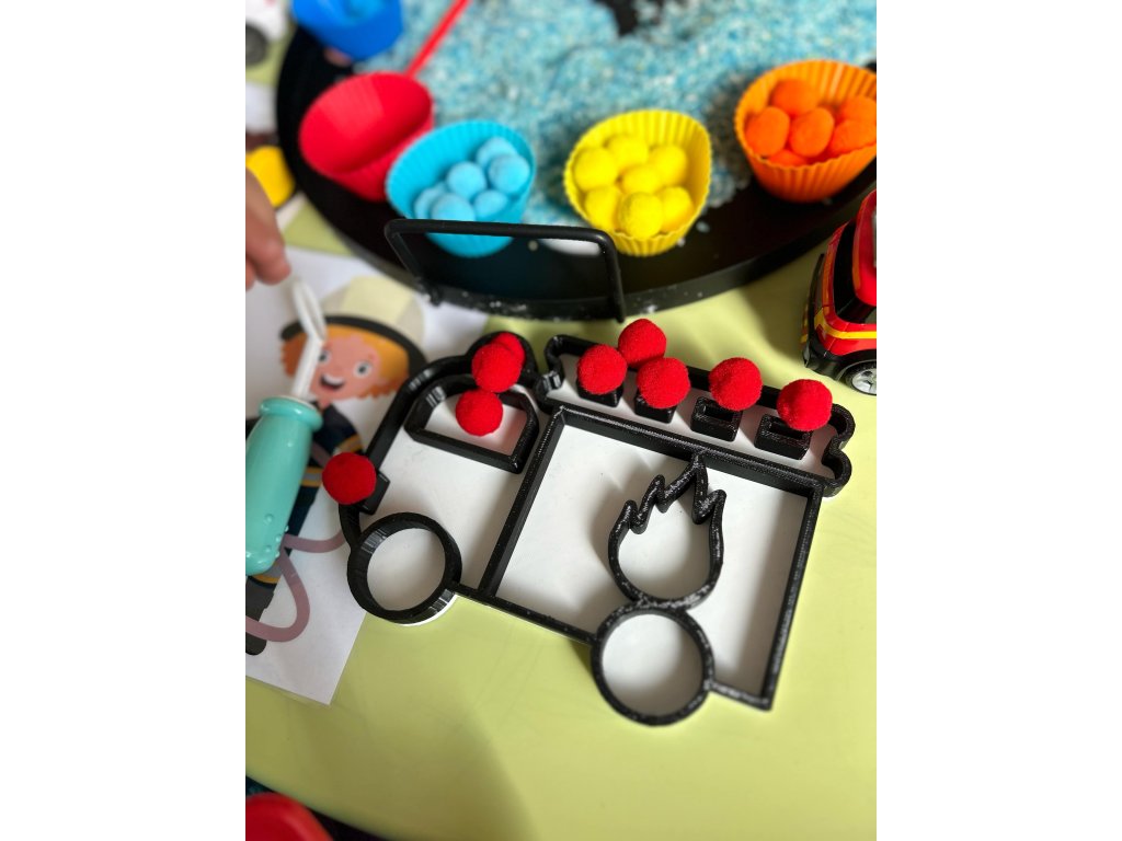 Třídící tác ve tvaru hasičského auta (Vysypávací tác)