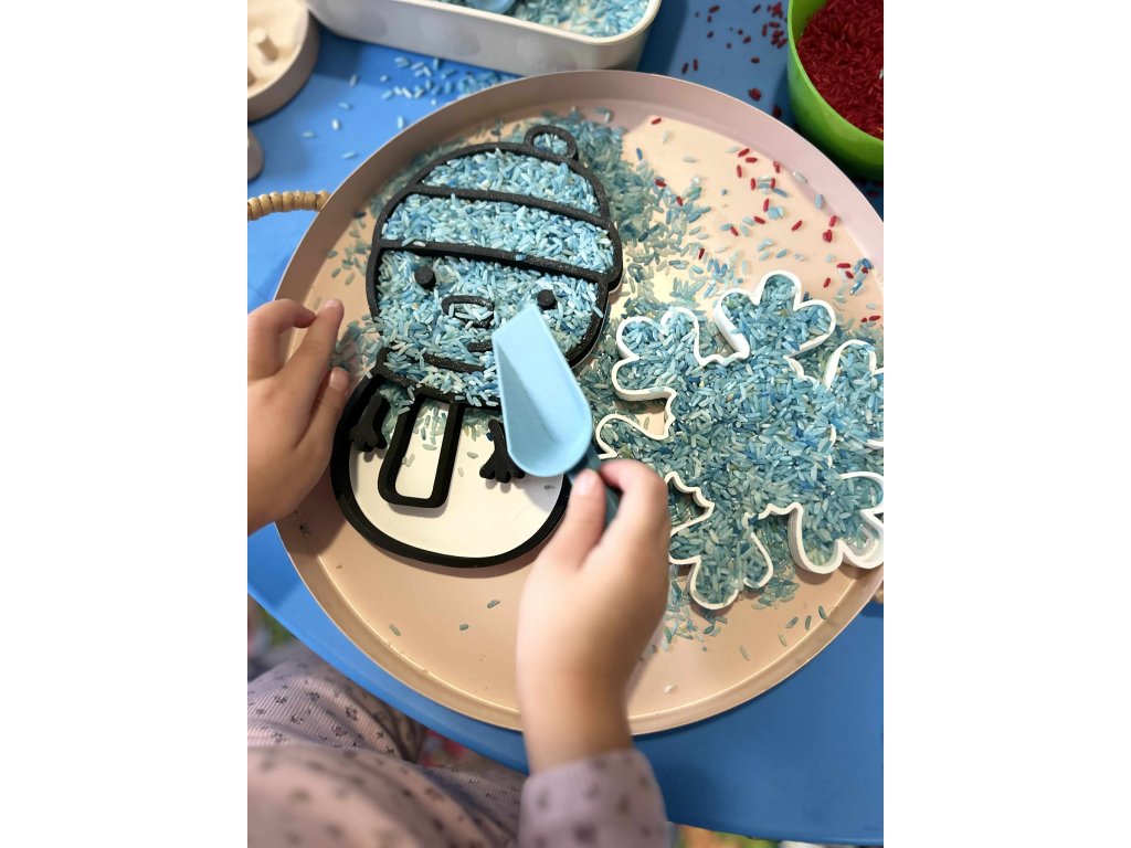 Do jednotlivých částí lze vkládat a třídit materiál dle záměru aktivity (např. pom-pony, rýži, těstoviny apod.).